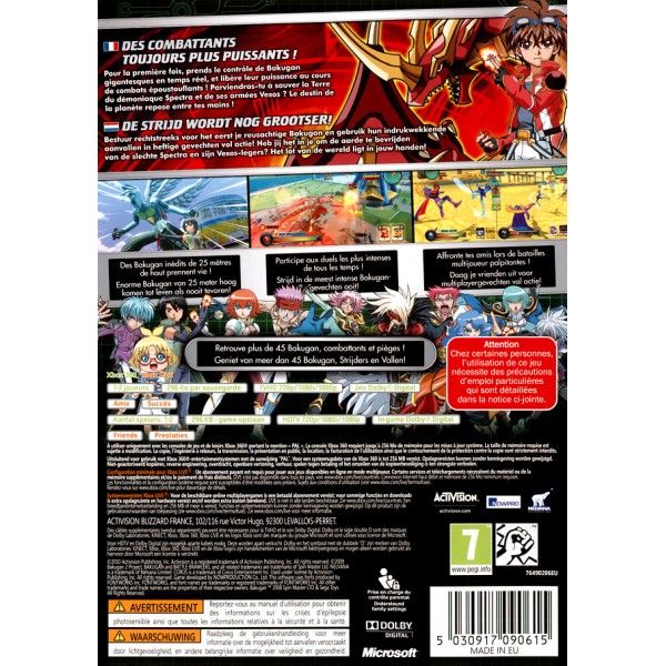 Bakugan Battle Brawlers : Les Protecteurs de la Terre est un jeu Xbox 360 qui vous plongera dans l'univers de la série Bakugan. Vous avez atterri dans un monde alternatif menacé par les terribles Vexos. Vous alternez entre des phases d'aventure lors desquelles vous devez éviter ces ennemis, et des phases de combat qui vous permettent d'incarner vos Bakugan.