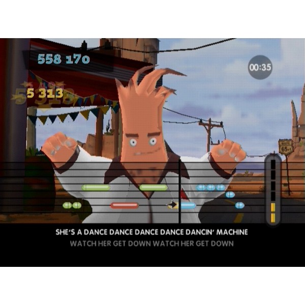 Boogie sur PS2 est un jeu hybride dans lequel il vous faut progresser avec des pas de danse et des séquences de chant. Choisissez votre avatar parmi cinq personnages hauts en couleur et lancez-vous dans la partie avec entrain. Enchaînez les spectacles pour récolter des bonus et autres récompenses qui vous permettent de personnaliser votre personnage. Appuyez sur les touches en rythme, faites chauffer vos cordes vocales sur le micro et obtenez les plus hauts scores, en solo ou en multi !