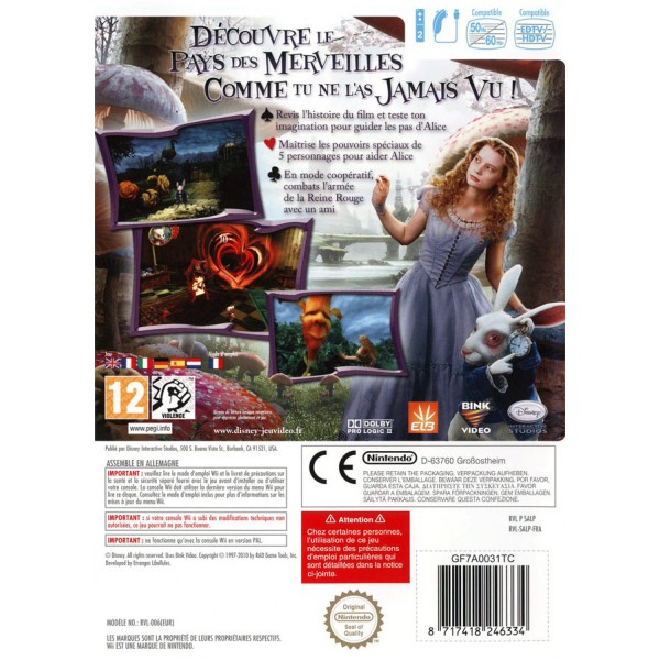 Inspiré du film de Tim Burton, Alice au Pays des merveilles est un jeu d'aventure sur Wii qui vous plongera dans l'univers déjanté de Lewis Carrol. Accompagnée de ses amis farfelus, le Chapelier Fou, le Lièvre de Mars, le Chat de Cheshire et le Lapin blanc, Alice devra mettre fin aux agissements de la Reine de coeur et du Jabberwocky.